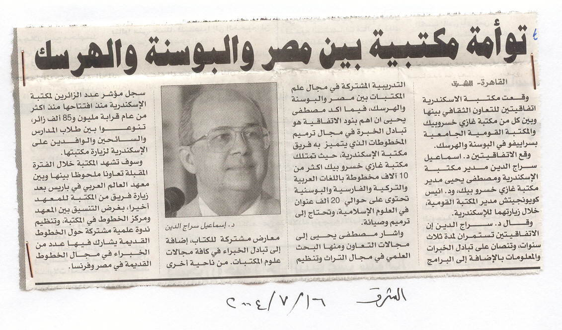 توامة مكتبية بين مصر والبوسنة والهرسك