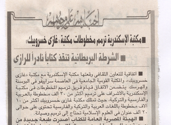 مكتبة الاسكندرية ترمم مخطوطات مكتبة غازى وخسرويك