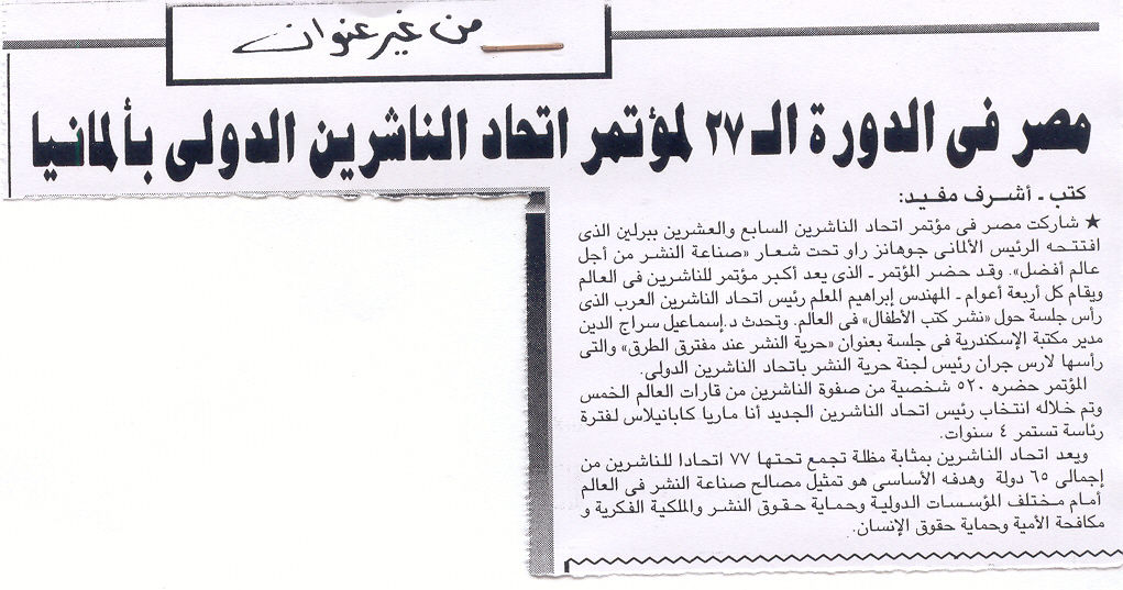 مصر فى الدورة الـ27 لمؤتمر اتحاد الناشرين الدولى بالمانيا