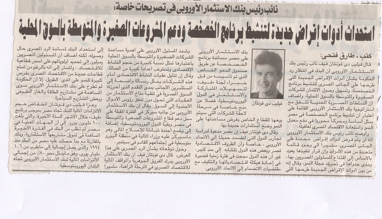 15 يونيو 2004 استحداث ادوات اقراض جديدة لتنشيط برنامج الخصخصة ودعم المشروعات الصغيرة والمتوسطة بالسوق المحلية الأهرام
