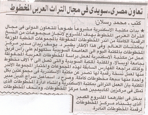 تعاون مصرى .. سويدى فى مجال التراث العربي المخطوط