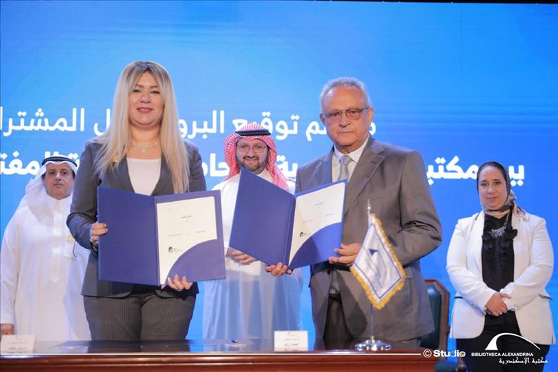 وشهد توقيع بروتوكول تعاون بين مكتبة الإسكندرية والجامعة العربية المفتوحة (فرع مصر) التي أسسها الأمير طلال رحمه الله، وتمتد فروعها اليوم إلى أكثر من 9 دول عربية. |