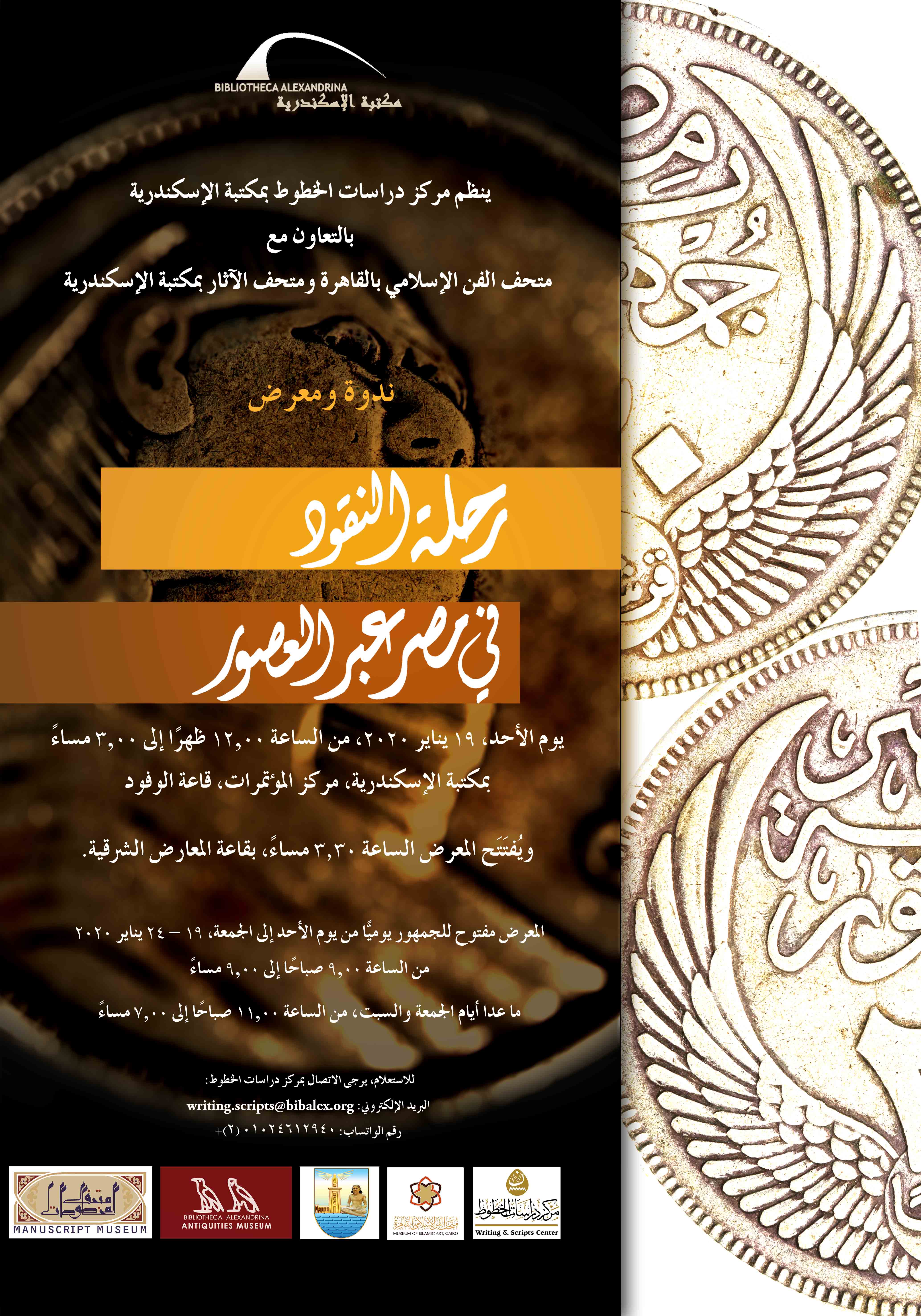 The BA Writing and Scripts Center, in collaboration with the Museum of Islamic Art in Cairo, the Educational Museum of Antiquities at the Faculty of Arts, Alexandria University, and the BA Museums of Antiquities and Manuscripts, organizes an exhibition entitled “The Journey of Numismatics in Egypt”, from 19 to 24 January 2020, in the BACC East Exhibition Hall.