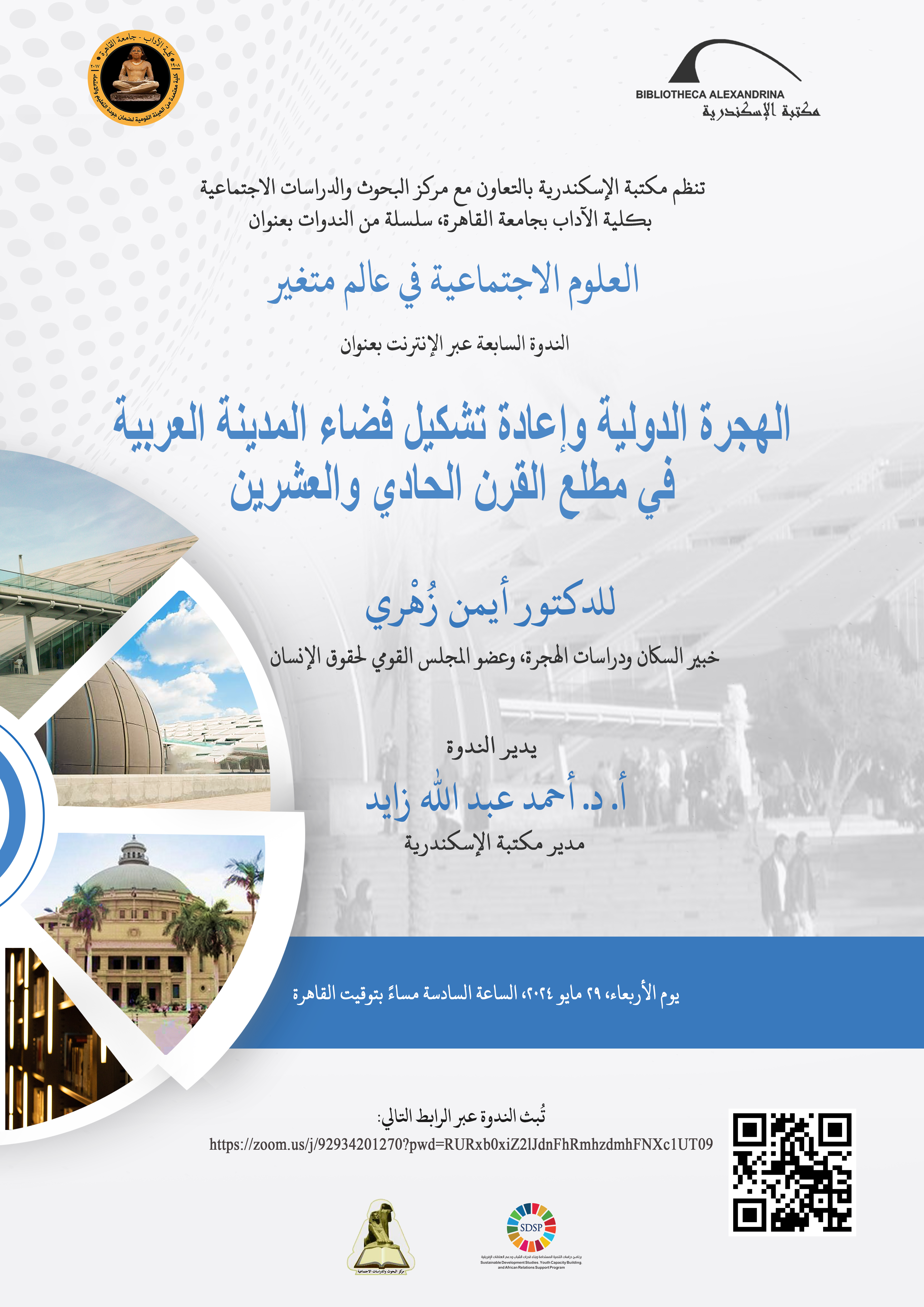 The BA Sustainable Development Studies, Youth Capacity Building, and African Relations Support Program is organizing a webinar entitled "International Migration and the Reshaping of the Arab City Space at the Turn of the 21st Century", delivered by Dr. Ayman Zuhri, Population and Migration Studies Expert and Member of Egypt’s National Council for Human Rights. The event will be held on Wednesday, 29 May 2024, at 6:00 pm CLT.