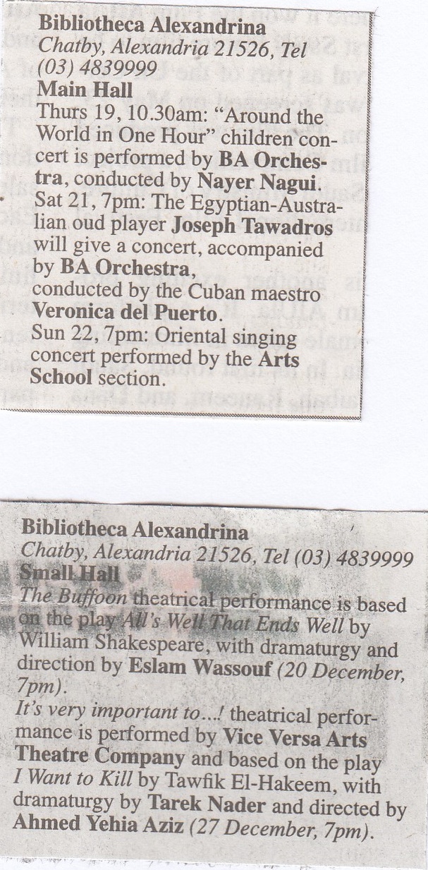 The upcoming events at Bibliotheca Alexandrina