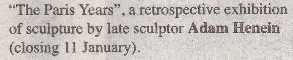 "The Paris years" a retrospective exhibition of sculptor Adam Henein