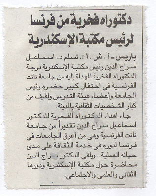 14 oct. 2006 Le directeur de la BA est fait docteur honoris causa de l'Université de Nantes Al-Gomhoureya