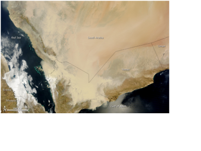 في 26 مارس 2011، هبت عاصفة ترابية قوية في شبه الجزيرة العربية، واندفعت لمسافة 500 كم عبر الجزيرة، لتغطي أجزاء من المملكة العربية السعودية واليمن وعمان الإمارات.