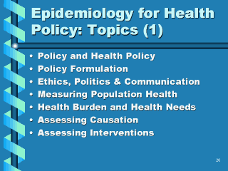 Here are the topic areas of the author's course         (EPI 7181 at the University of Ottawa)