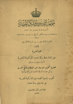 محاضرة عن انشاء خط سكة حديد الحكومة المصرية ما بين ميت بره و زفتى