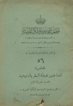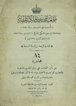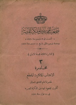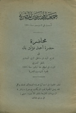 محاضرة حضرة احمد فؤاد بك فى توزيع المياه فى مناطق الرى المستديم بالقطر المصرى