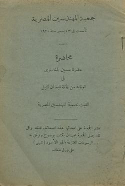 محاضرة حضرة حسين سرى فى الوقاية من غائلة فيضان النيل