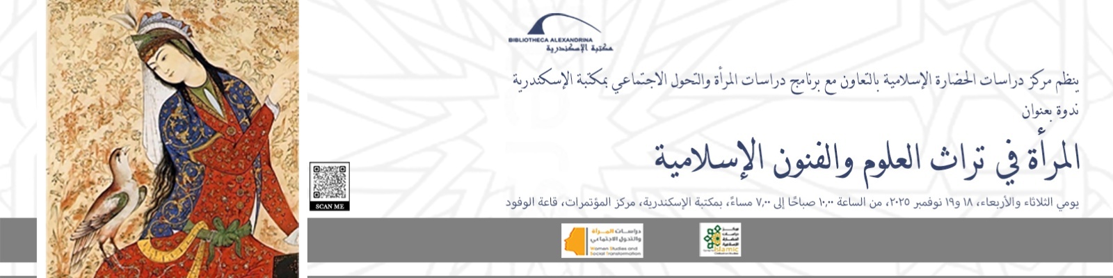 مركز دراسات الحضارة الإسلامية هو أحد المراكز البحثية المتخصصة بمكتبة الإسكندرية، والذي يتسق مع أهداف المكتبة، وكذلك مع مبادرتها لترسيخ مفهوم عالمية الإسلام وسماحته، ومن ثم حضارته التي تمثل رافدًا من روافد الحضارة الإنسانية. الأمر الذي يعمق عمليًّا الانتماء الأسمى لقيم التسامح والتآخي وقبول الآخر، بعيدًا عن مفاهيم التعصب، لتصبح الاستنارة سبيلاً نلتمسه فيما خلَّفه صنّاع هذه الحضارة التي امتدت من الصين شرقًا إلى الأندلس غربًا، من إنجازات إبداعية في العلوم والفنون والفكر الفلسفي، أفادت البشرية في تناغم واتساق في كافة مناحي الحياة؛ ذلك أن فضاءات الحرية تتجسَّد في عصور الترجمة والانفتاح على الثقافات المختلفة في ساحات الحضارة الإسلامية صنوًا للإبداع الملتزم والتنوع المتميز، بما جعل لها شخصيتها المتميزة وإسهاماتها البارزة على مر العصور، وكفل لها استمرارية تتدفق حيويةً في عصرنا الحديث والمعاصر.