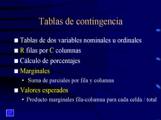 Se denominan marginales a los subtotales para cada fila y columna de la tabla. La suma de marginales de filas es igual al de columnas, y es el total de la tabla.
