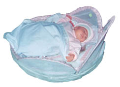 Other rituals carried out in the sebou’ are mainly food related. The newborn is rocked in a sieve (symbolizing flour and its association with bounty and abundance) to suggest survival and safety from the perils of life, to the rhythm of a pestle pounding the mortar (usually pounded close to baby's ears to make sure he develops immunity to noise and fear), while salt is sprinkled throughout the house to ward off the evil eye.