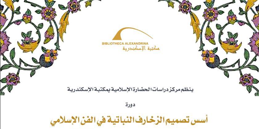 ينظم مركز دراسات الحضارة الإسلامية التابع لقطاع البحث الأكاديمي بمكتبة الإسكندرية دورة بعنوان "أسس تصميم الزخارف النباتية في الفن الإسلامي" تقدمها الأستاذة هبة الله حجازي، مسئول تصميم مطبوعات بمركز دراسات الحضارة الإسلامية، من الأحد إلى الأربعاء، 2 إلى 5 فبراير 2020، من الساعة 12.00 ظهرًا إلى 4.00 مساءً، بمكتبة الإسكندرية، مركز المؤتمرات، قاعة اجتماعات كبار الزوار.