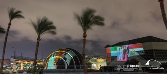 إضاءة مكتبة الإسكندرية بعلم الإمارات بمناسبة زيارة سمو الشيخ محمد بن زايد لمصر - 16 ديسمبر 2020