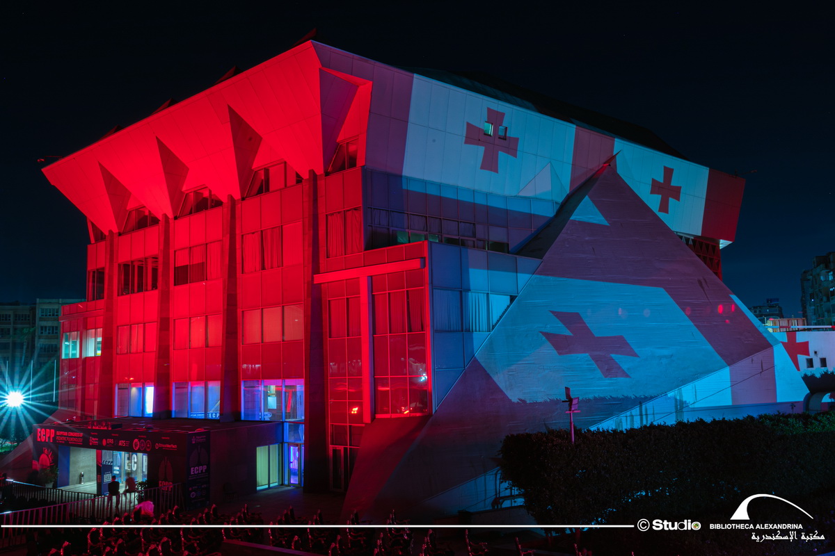 إضاءة مبنى مكتبة الإسكندرية بعلم جورجيا - 26 مايو 2022