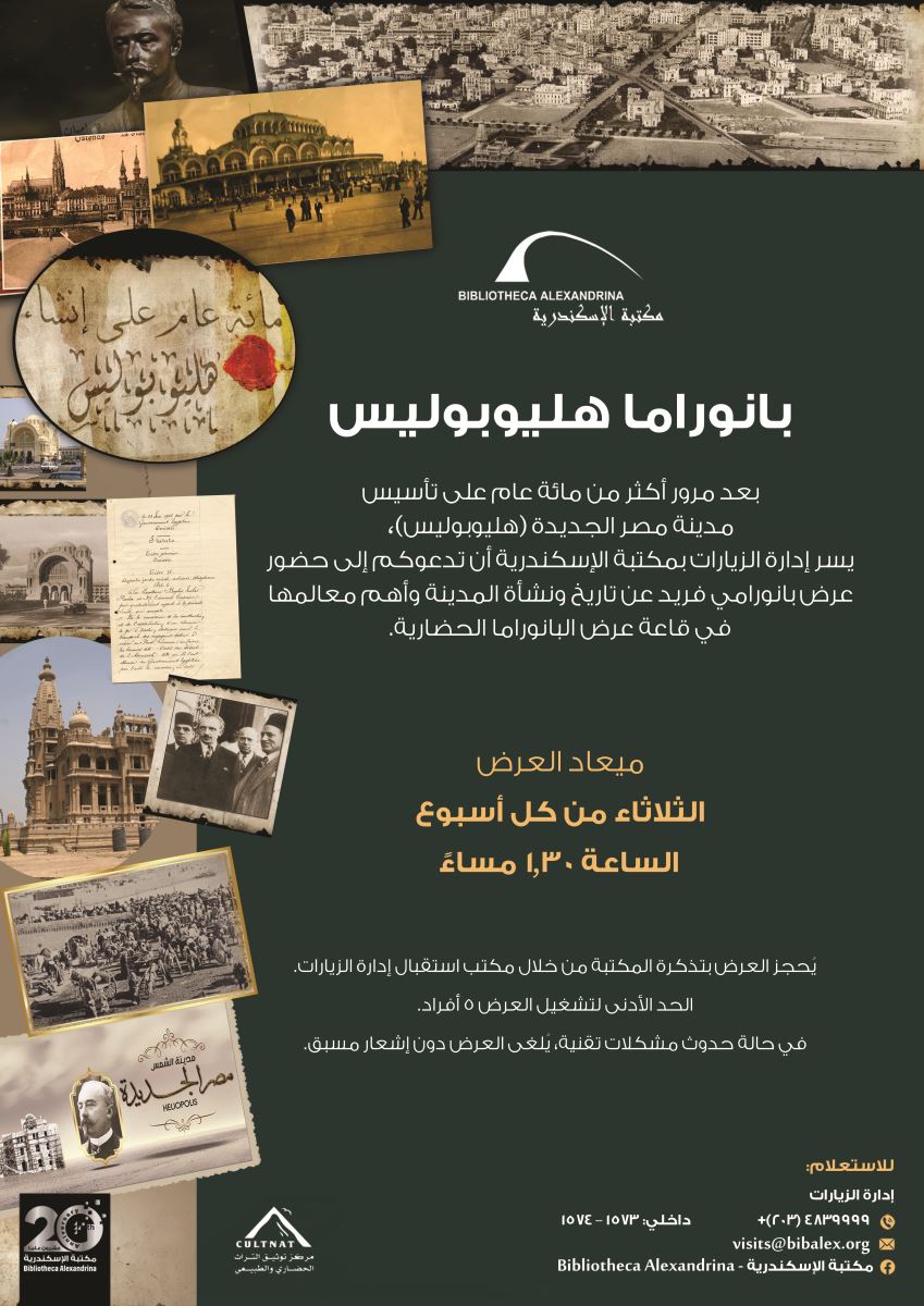 يقدم هذا العرض البانورامي مراحل إنشاء مدينة مصر الجديدة وأهم معالمها، ويعرض الثلاثاء من كل أسبوع الساعة 1:30 ظهرًا.