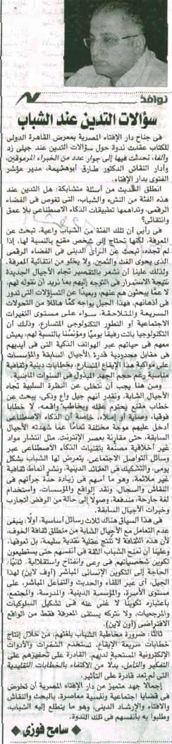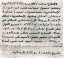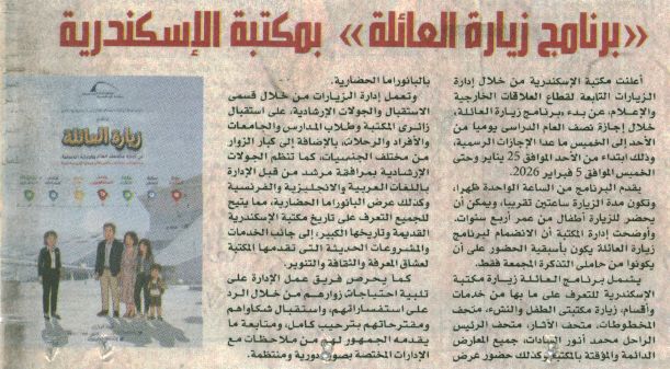 29 يناير 2026 قطاع البحث الأكاديمي بمكتبة الإسكندرية ينظم الحوار الثالث عشر من حوارات الإسكندرية تحت عنوان: "أصداء الذاكرة: مصطفى العبادي ومكتبة الإسكندرية" المصري اليوم