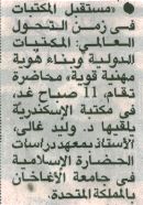 17 يناير 2026 "مستقبل المكتبات في زمن التحول العالمي: المكتبات الدولية وبناء هوية مهنية قوية" محاضرة بمكتبة الإسكندرية الأهرام