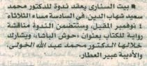 30 أكتوبر 2025 بيت السناري يعقد ندوة للدكتور محمد سعيد شهاب الدين لمناقشة رواية للكتاب بعنوان "حوش الباشا" المصري اليوم