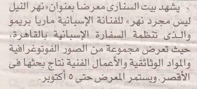 29 سبتمبر 2024 معرض "نهر النيل ليس مجرد نهر" للفنانة الإسبانية ماريا بريمو في بيت السناري أخبار الأدب
