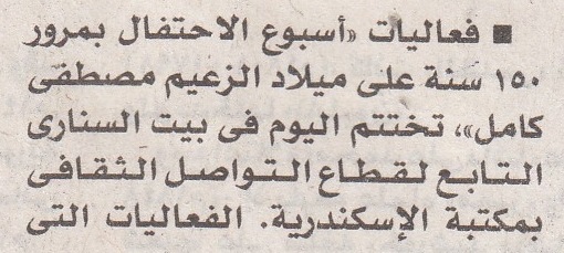 فعاليات "أسبوع الاحتفال بمرور 150 سنة على ميلاد الزعيم مصطفى كامل"