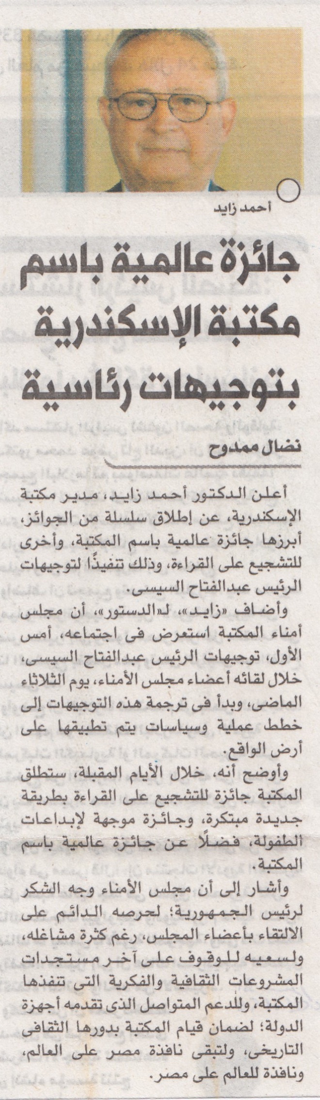 جائزة عالمية بإسم مكتبة الإسكندرية بتوجيهات رئاسية