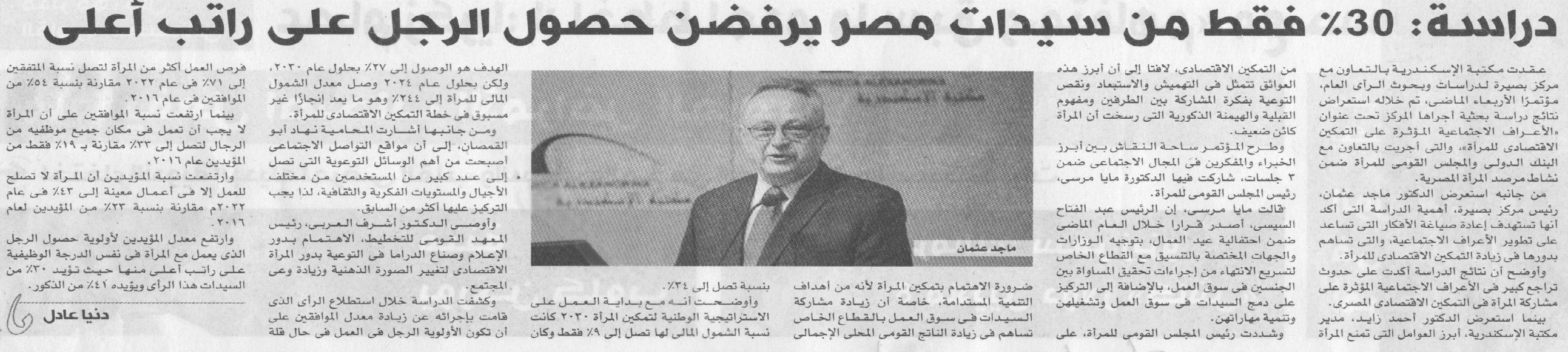 دراسة:30% فقط من سيدات مصر يرفضن حصول الرجل علي راتب أعلي