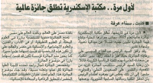 لأول مرة.. مكتبة الإسكندرية تطلق جائزة عالمية