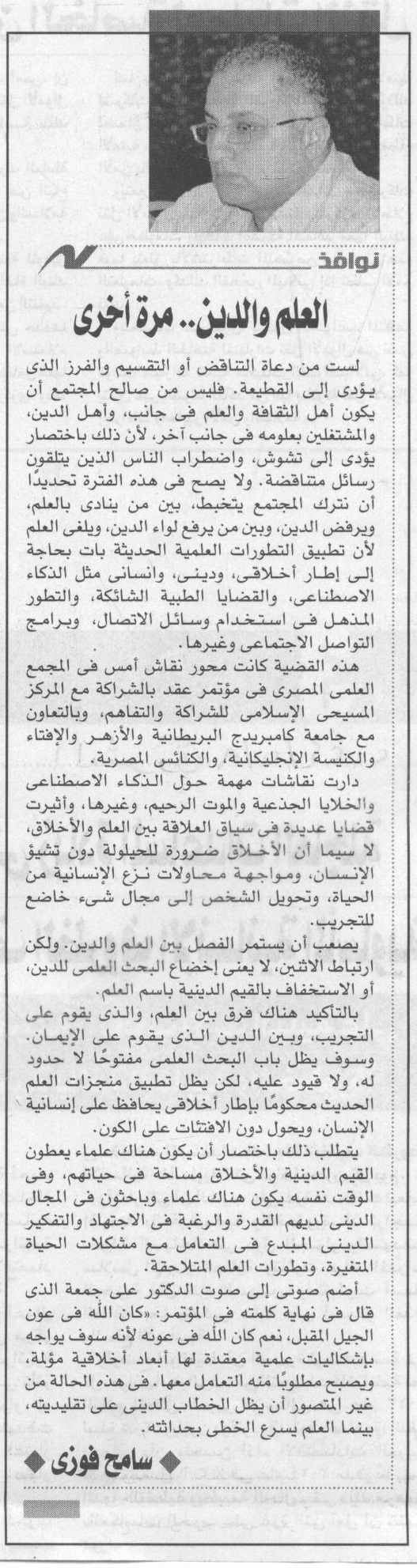 العلم والدين...مرة أخري