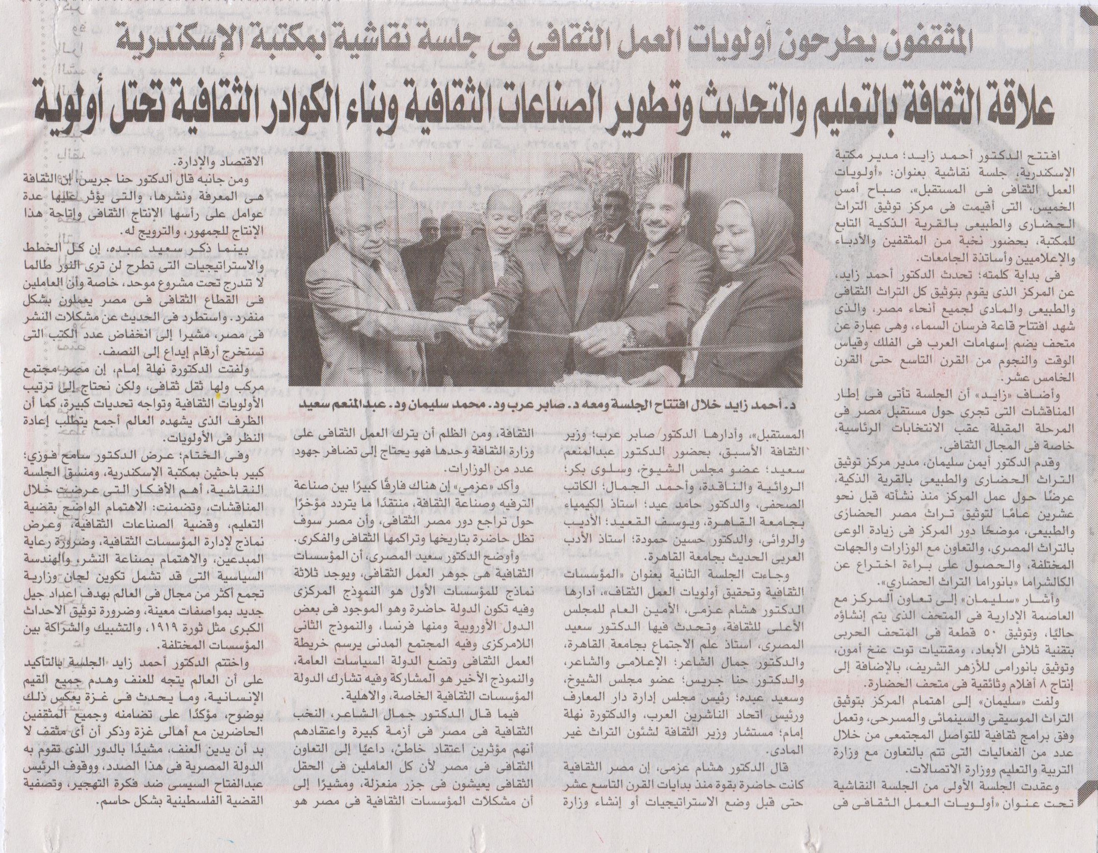 المثقفون يطرحون أولويات العمل الثقافي في جلسة نقاشية بمكتبة الإسكندرية
