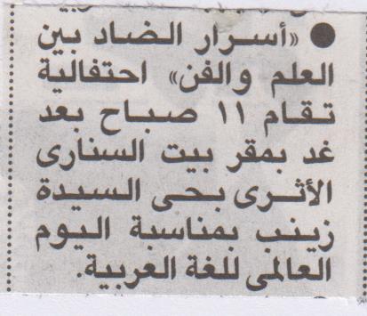 "أسرار الضاد بين العلم والفن" بمكتبة الإسكندرية
