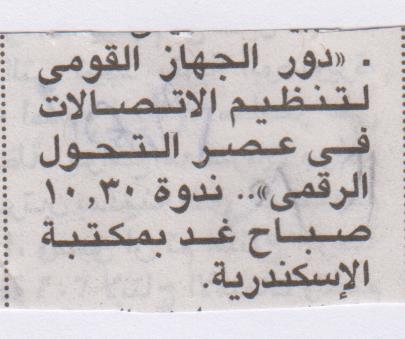 "دور الجهاز القومي لتنظيم الاتصالات في عصر التحول الرقمي" بمكتبة الإسكندرية