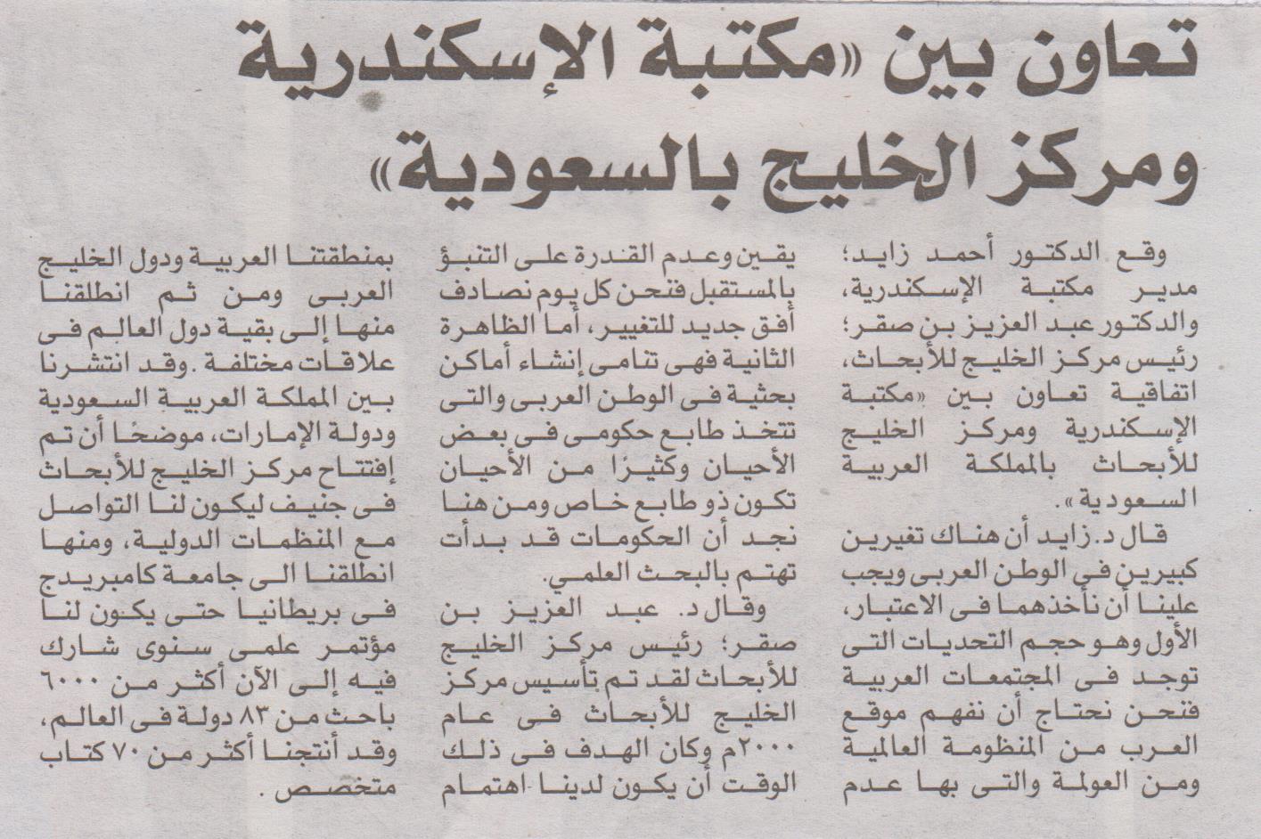 تعاون بين "مكتبة الإسكندرية ومركز الخليج بالسعودية"