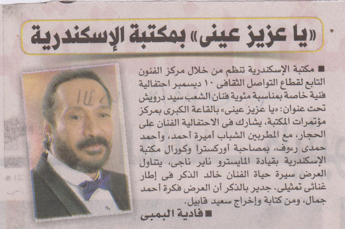 "يا عزيز عيني" بمكتبة الإسكندرية