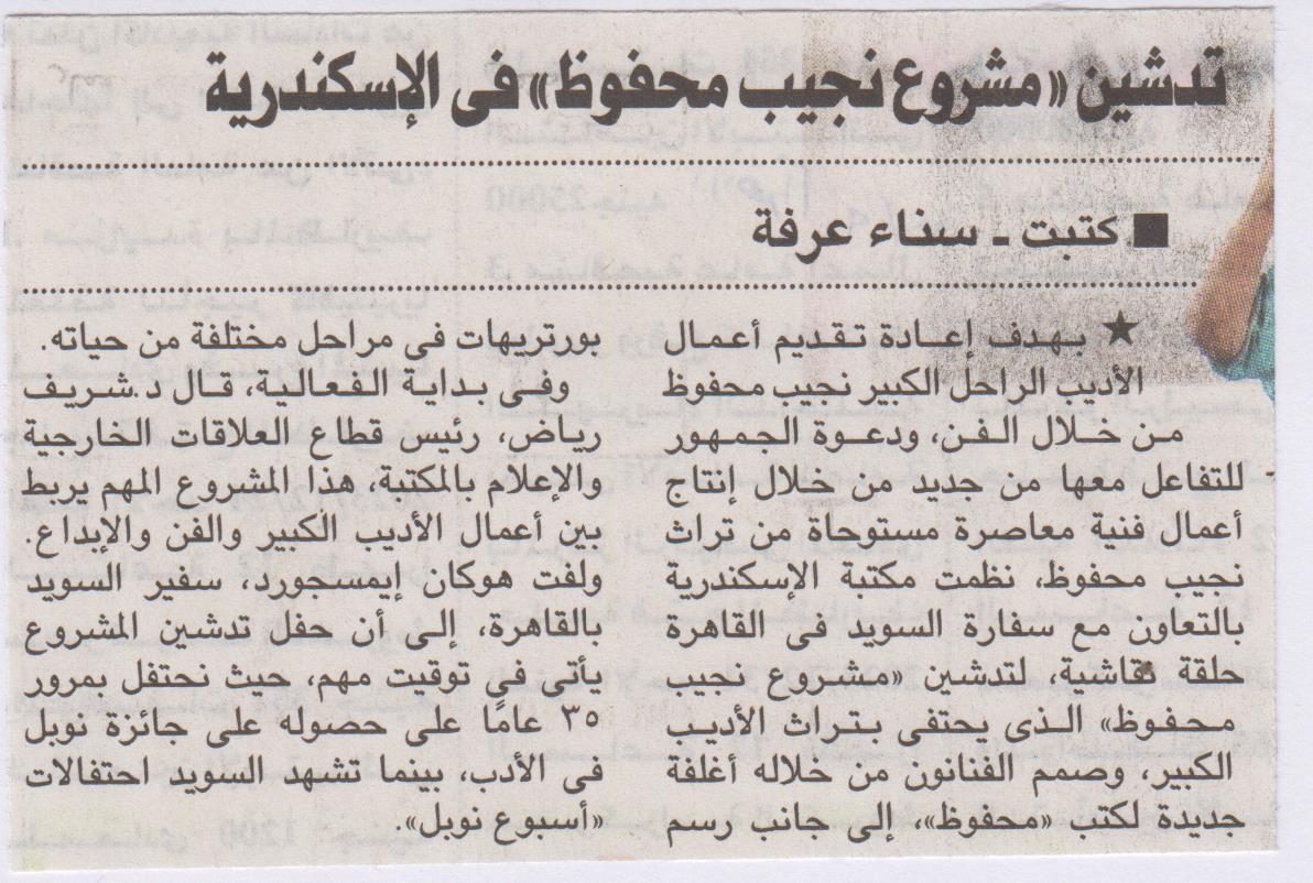 تدشين "مشروع نجيب محفوظ" في الإسكندرية