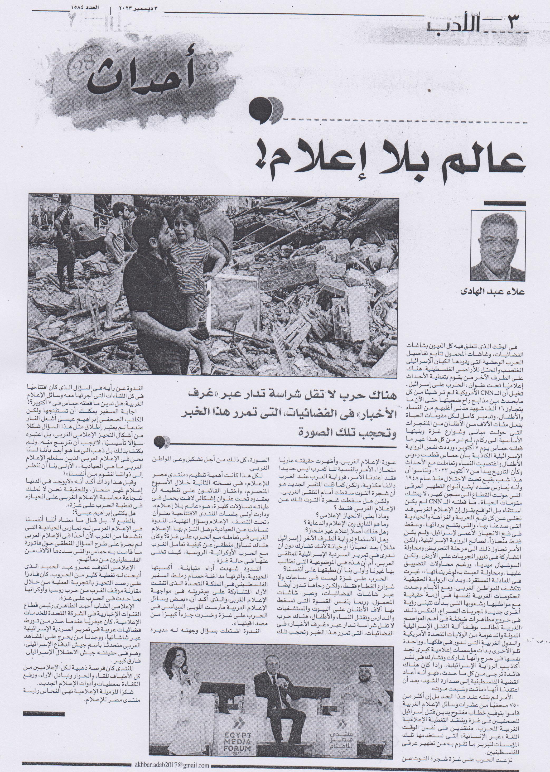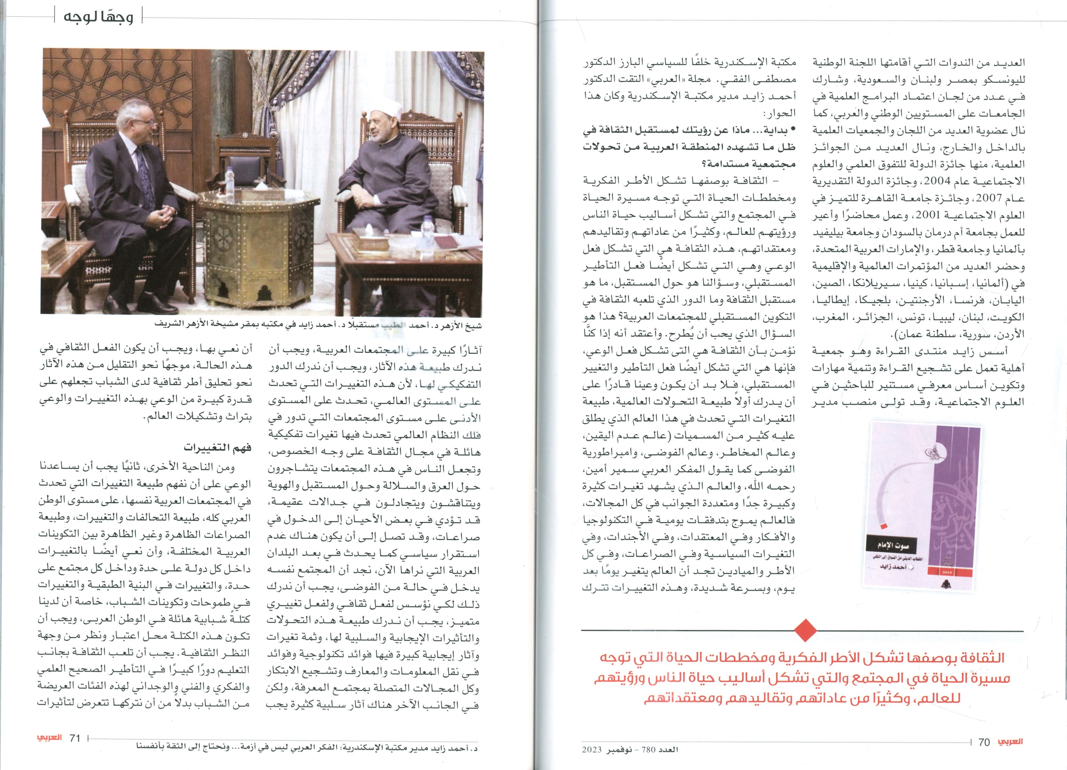 30 نوفمبر 2023 د.أحمد زايد مدير مكتبة الإسكندرية: الفكر العربيليس في أزمة ونحتاج إلي الثقة بأنفسنا........1 العربي الكويتية