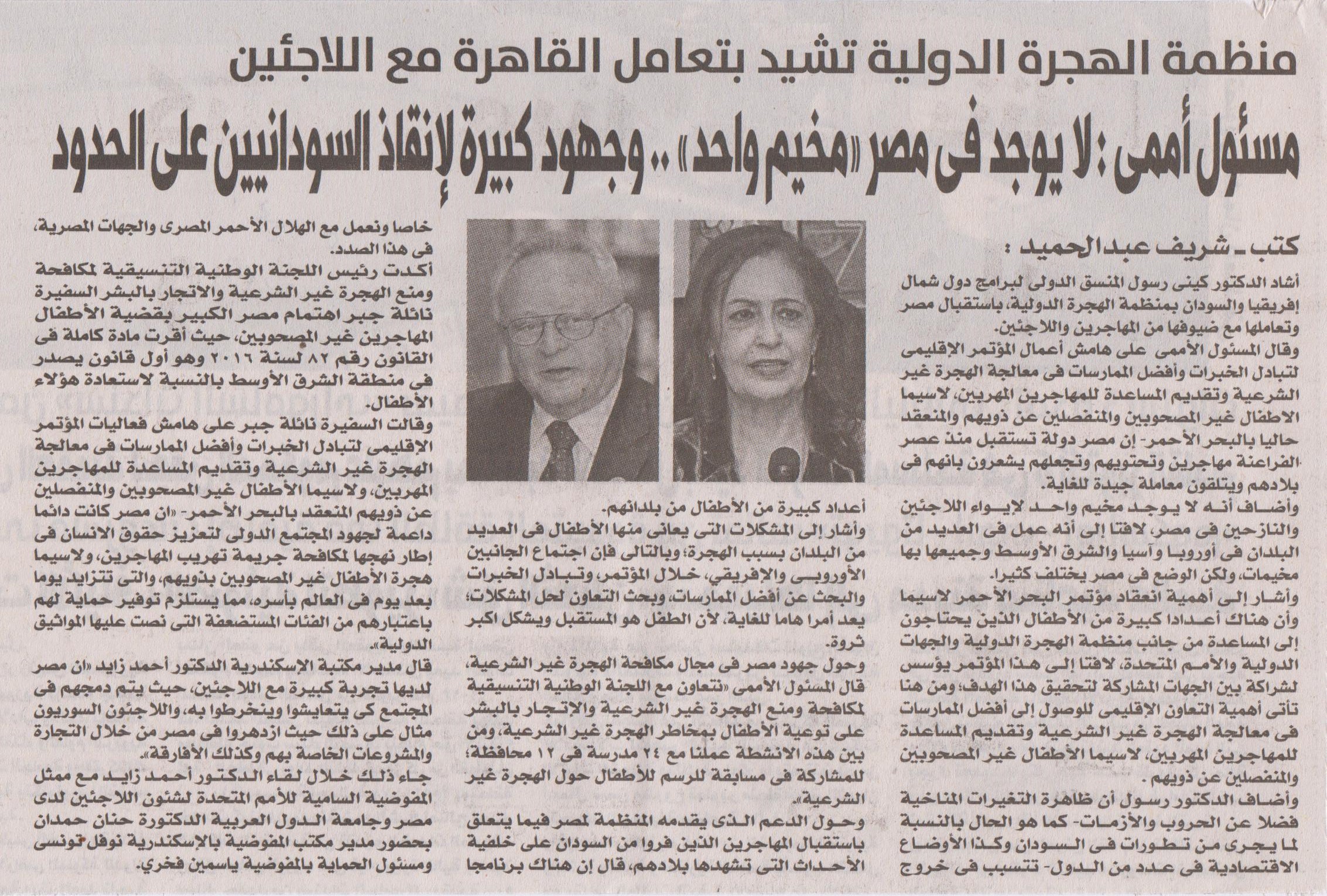 منظمة الهجرة الدولية تشيد بتعامل القاهرة مع اللاجئين