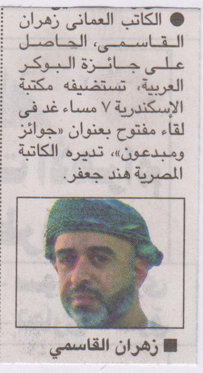 "زهران القاسمي" غدًا بمكتبة الإسكندرية