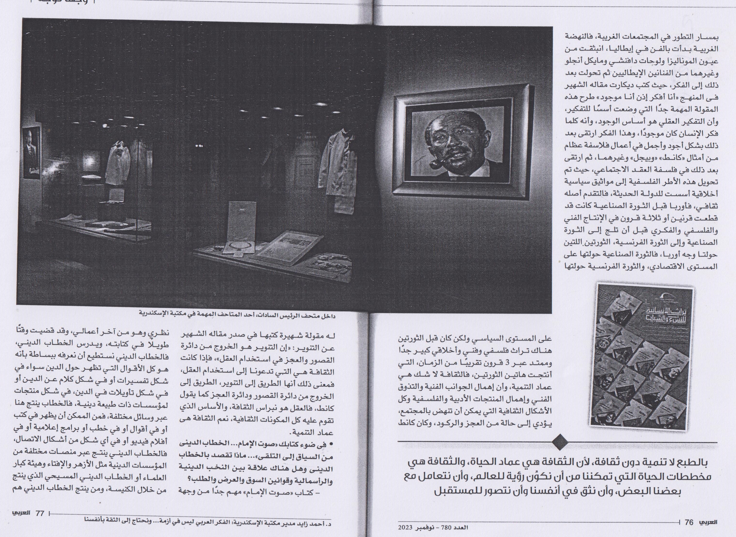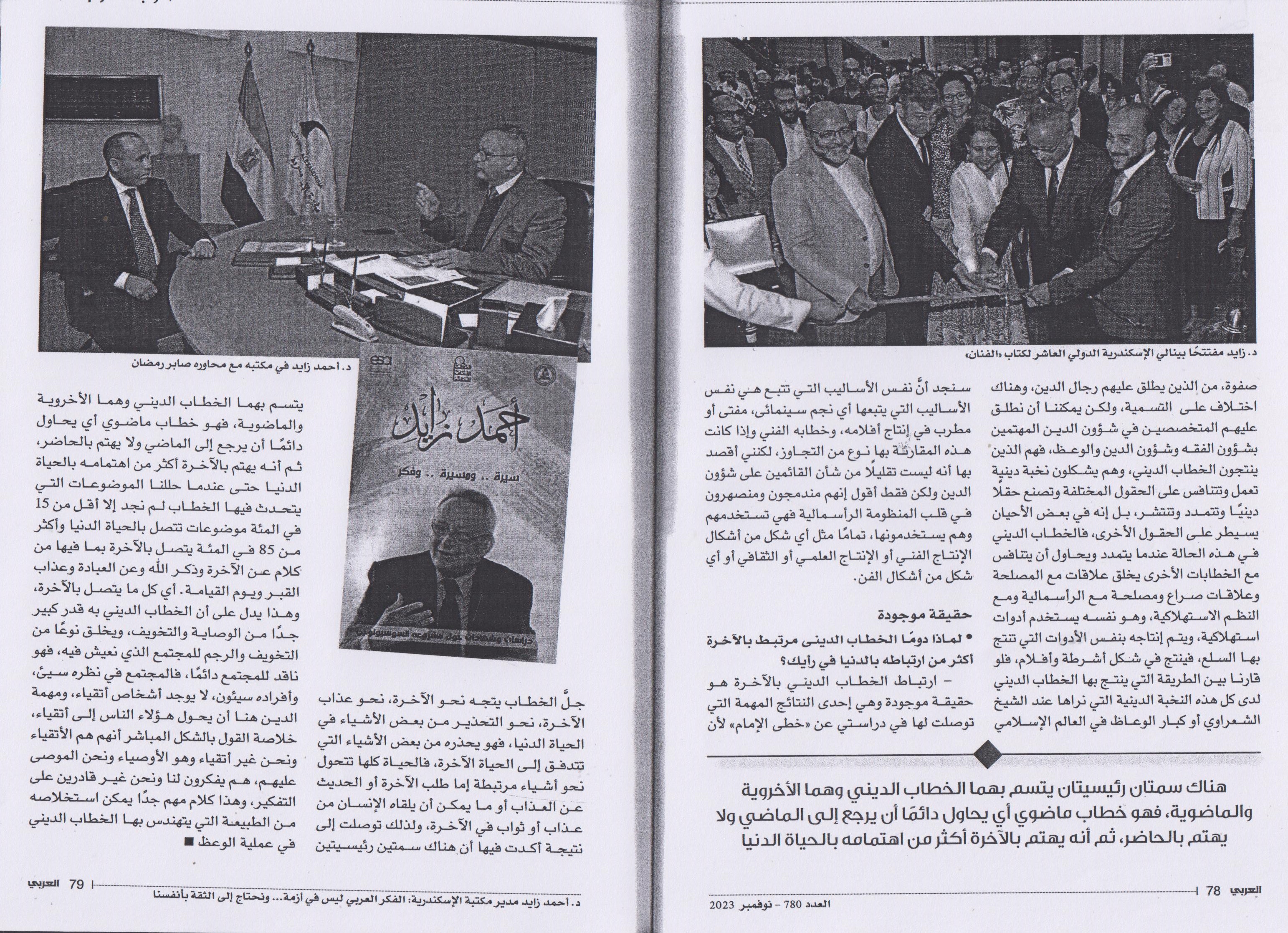 19 نوفمبر 2023 د. أحمد زايد مدير مكتبة الإسكندرية: (5)الفكر العربي ليس في أزمة ونحتتاج إلى الثقة بأنفسنا الأهرام العربي
