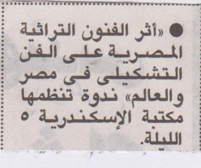 30 أكتوبر 2023 "أثر الفنون التراثية المصرية على الفن التشكيلي في مصر والعالم" بمكتبة الإسكندرية الأهرام