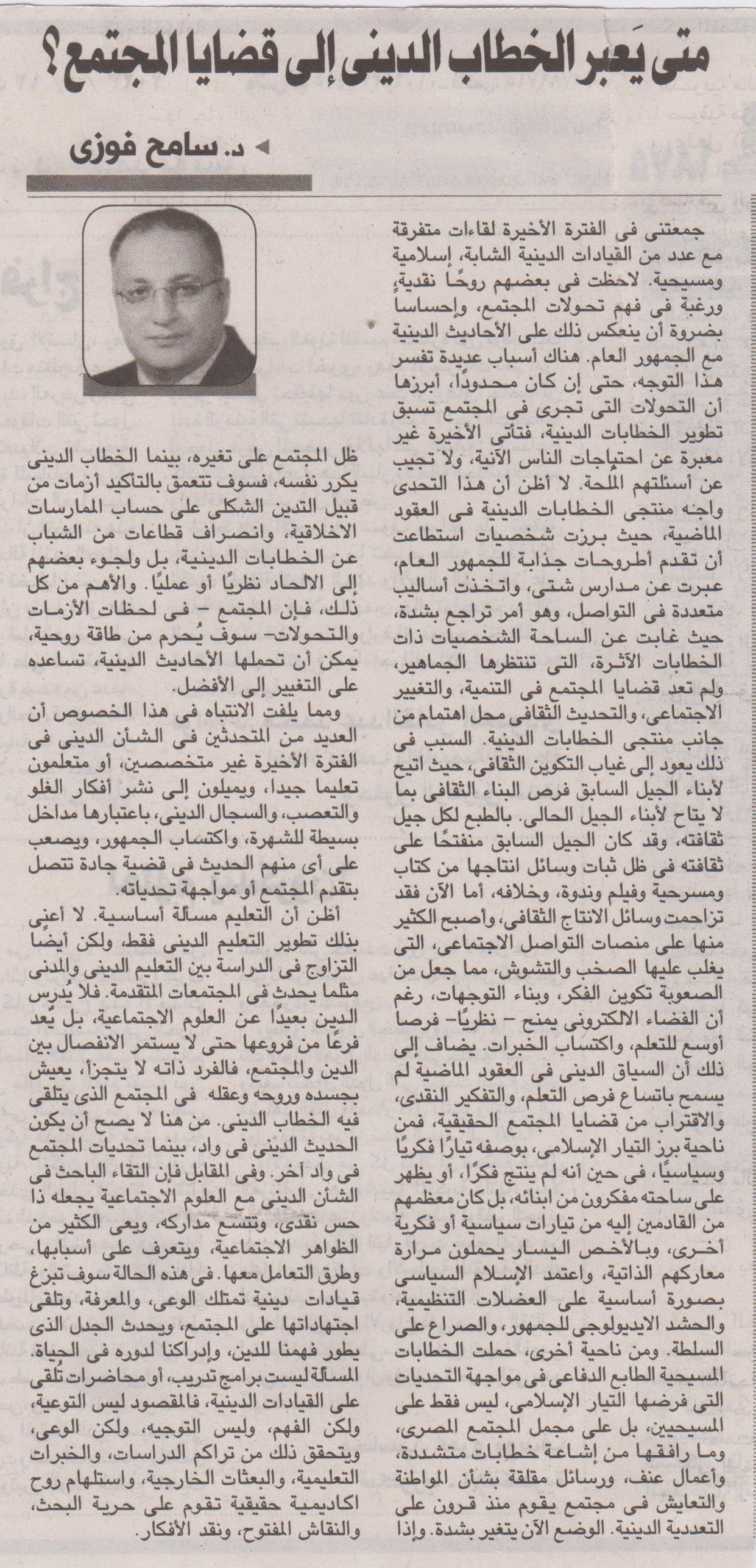 متى يَعبرالخطاب الديني إلى قضايا المجتمع؟