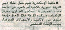 مكتبة الإسكندرية تقيم حفل إنشاد ديني للفرقة السورية "أبو شعر"