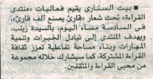 بيت السناري يقيم فعاليات "منتدى القراءة" تحت شعار "قارئ يصنع ألف قارئ"