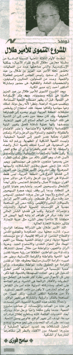 نوافذ. سامح فوزي: المشروع التنموي للأمير طلال