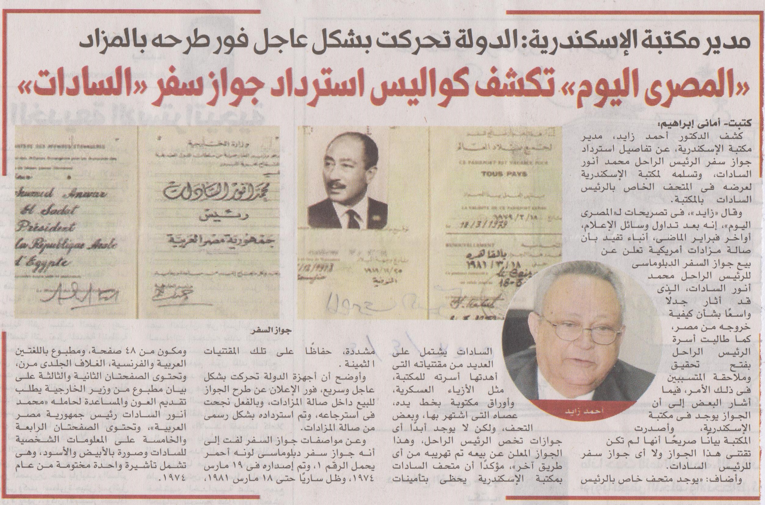 "المصري اليوم" تكشف كواليس استرداد جواز سفر "السادات"