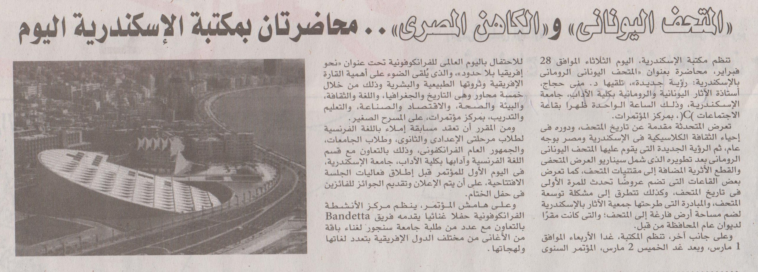 "المتحف اليوناني" و "الكاهن المصري" .. محاضرتان بمكتبة الإسكندرية اليوم