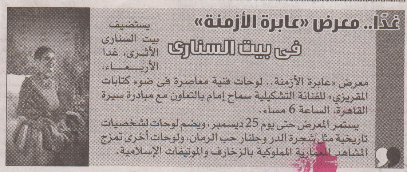 غدًا .. معرض "عابرة الأزمنة" في بيت السناري